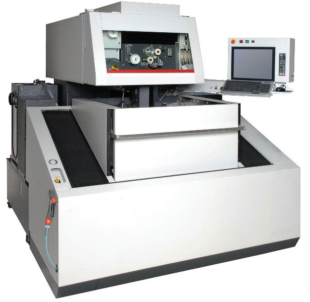 慢走絲線切割機(jī)床根據(jù)電極絲的運(yùn)行速度不同,電火花線切割機(jī)床通常分為兩類:一類是慢走絲(也叫低速走絲電火花線切割機(jī)床)電極絲作低速單向運(yùn)動(dòng),一般走絲速度低于0.2mm/s,精度達(dá)0.001mm級(jí),表面質(zhì)量也接近磨削水平。電極絲放電后不再使用,工作平穩(wěn)、均勻、抖動(dòng)小、加工質(zhì)量較好。而且采用先進(jìn)的電源技術(shù),實(shí)現(xiàn)了高速加工,較大生產(chǎn)率可達(dá)350mm2/min由于慢走絲線切割機(jī)是采取線電極連續(xù)供絲的方式,即線電極在運(yùn)動(dòng)過(guò)程中完成加工,因此即使線電極發(fā)生損耗,也能連續(xù)地予以補(bǔ)充,故能提高零件加工精度。慢走絲線切割機(jī)所加工的工件表面粗糙度通??蛇_(dá)到Ra=0.12μm及以上,且慢走絲線切割機(jī)的圓度誤差、直線誤差和尺寸誤差都較快走絲線切割機(jī)好很多,所以在加工高精度零件時(shí),慢走絲線切割機(jī)得到了廣泛應(yīng)用。