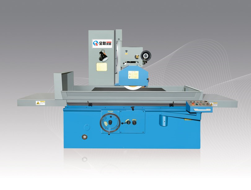 工作臺縱向運動為液壓驅(qū)動。磨頭在拖板上的橫向運動由電機帶動滾珠絲桿進行驅(qū)動,亦可手動,并有互鎖裝置。拖板(連同磨頭)在立柱上,上、下垂直運動具有手動進給和機動(快速升降)功能,并有互鎖裝置。升降絲桿為滾珠絲桿,操縱輕便靈活。