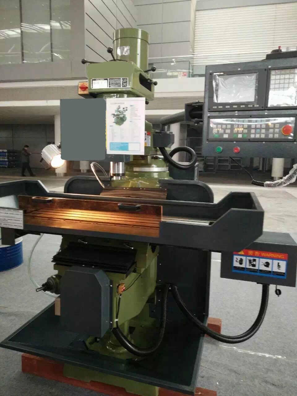 2、銑頭配置炮塔銑床頭,且主軸裝有手動和微動兩種進給方式,加工方便、準確;