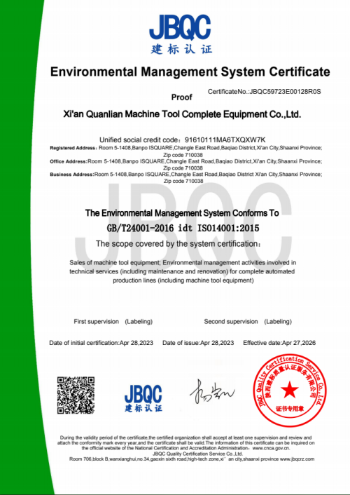 全聯(lián)成套全面通過(guò)環(huán)境管理體系認(rèn)證證書(shū)